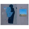 Huile sur toile contrecollée sur une plaque de métal peinte et collage sur contreplaqué