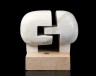 Pierre Székely (1923-2001) Couple Platonique, 1989 Marbre blanc de Carrare et marbre rose de Transdanubie Plaque titrée, datée et signée H 32 × L 32 × P 21 cm