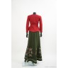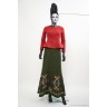 PIROVANO COUTURE - Circa 1970 JUPE DE CHALET en loden vert rebrodé de cannetilles, perles et strass Griffe blanche, graphisme noir Env. T S