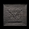 Plaque de cheminée en fonte de fer à décor d’Adam et Eve de part et d'autre de l'Arbre de la Science du Bien ou du Mal. Arbre stylisé à trois branches feuillues dans lequel est grimpé le Serpent tentateur et au pied duquel sont couchés deux lions ; deux têtes d’hommes barbus dans les angles supérieurs ; entourage avec entrelacs formant des coeurs accostés ; bord extérieur en doucine ornée de feuillages. XVIe siècle H 76,5 × L.82,5 cm Ouvrage consulté : H Carpentier, Plaques de cheminées, T 1, Paris, 1912, p. 23.