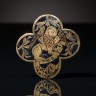 Plaque de forme quadrilobée en cuivre champlevé, gravé, émaillé et doré, émaux bleu foncé et rouge représentant le lion ailé de saint Marc. L'animal symbolique du saint Evangéliste est de profi, regardant sur la droite et tenant un phylactère avec l’inscription MARC en lettres gothiques. Toscane, troisième quart du XIVe siècle H 7,6 × L 7,6 cm (petites sautes d’émail) Provenance : ancienne collection privée, Angleterre