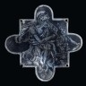 Plaquette en argent niellé en forme de quadrilobe avec redents représentant l'évangéliste saint Matthieu, élément d'une croix processionnelle. L'Evangéliste est assis trempant sa plume dans un encrier que lui tend un enfant agenouillé auprès de lui. Quatre trous de fiation. Italie du nord, atelier du nord de l'Adriatique, milieu du XVIe siècle H 6,1 × L 6,2 cm (léger manque à un angle) On peut rapprocher cette plaque d'une belle qualité d'exécution à un baiser de Paix représentant l'Annonciation en argent niellé des collections du musée du Bargello de Florence (Inv. C 742) Ouvrage consulté : M. Collareta et A. Capitanio, Orefieria Sacra Italiana, musée national du Bargello, Florence, Florence, 1990, pp. 244-245
