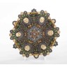 Plat en céramique polychrome de style néorenaissance à décor de masques en relief Diamètre : 25 cm