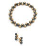 POIRAY Parure composée d'un collier et d'une paire de clips d'oreilles en or jaune 18k (750‰) et boules d'hématite. Signée, numérotée Poids brut : 192,4 g