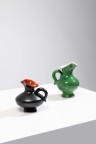 Ensemble de deux pichets modèles n°834 et n°833 Céramique émaillée Incisé 'Poterie Pol Chambost 833' sur l'envers de l'un et marqué '834' sur l'envers de l'autre Modèles créés vers 1950 H 18 × L 17 × P 19 cm ; H 24 × L 25 × P 16 cm