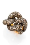 Bague articulée en or rose 18k (750‰) ornée d'un motif noeud en argent (925‰) pavé de diamants fancy colour