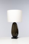 'Coffee Bean' Lampe Verre soufflé fumé et bois H 42 cm Hauteur totale 73 cm Provenant d'un hôtel particulier décoré par Damien Langlois-Meurinne