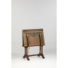 Porte-gravure en chêne sculpté, laiton doré et cuir doré aux petits fers, les montants en colonnes cannelés reposant sur des pieds feuillagés à volutes.