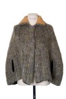 Blouson en mohair à larges mailles tricotées “bubbles” gris souris col aviateur double beige Taille : 38