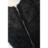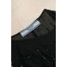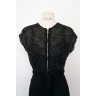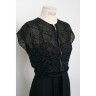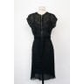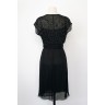 PRADA - Circa 2003 ROBE COCKTAIL en mousseline crépon noir sur fond bordé de dentelle à l'ourlet, corsage zippé rebrodé de perles et de paillettes, ceinture-lien T. 38 it Petits manques