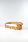 Canapé Rotin et textile Édition Preview Furniture Étiquette de l’éditeur sous l’assise Modèle créé dans les années 1980 H 72 × L 240 × P 102 cm