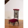 Prie-Dieu en bois noirci et doré, dossier ajouré à montants à colonnettes et monogrammé M, recouvert de velours bordeaux. Fin XIXe siècle H 88×L 47 cm