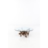 Pucci de Rossi (né en 1947) Roméo et Juliette - N°5/25 Table basse Bronze patiné et verre Edition limitée à 25 exemplaires Signée 'PdR 96 MKF' et 'Pucci de Rossi' sur le piètement Date de création : 1996 H 40 × Ø 100 cm