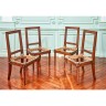 Quatre chaises en hêtre mouluré à dossier plat, reposant sur des pieds fuselés et bagués à l'avant et des pieds arrière en sabre ; (sans garniture ; peintes à l'origine).