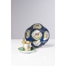 Ravier quartefeuille à décor d'oiseaux en réserve sur fond gros bleu, Chelsea, XIXe siècle.