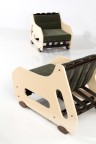 Bois lamellé collé laqué, cuir et textile