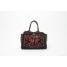 CABAS en daim noir et bourgogne, chaque côté en cuir chocolat à découpes géométriques, effet de clous en métal canon de fusil