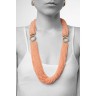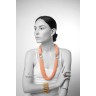 Collier double composé de 100 rangs de billes de corail réunis par deux motifs ronds servant de fermoir en or jaune 18k (750‰), entièrement sertis de diamants taille brillant (il peut se diviser en deux colliers)