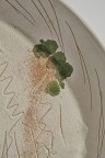 Plat en terre rouge, décor aux engobes, oxydes et sable, emaillée