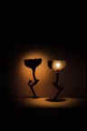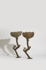 Paire de bougeoirs en cuivre, fer et étain