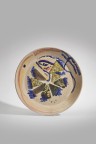 Plat en terre rouge, engobes, oxydes et plaques de fer, emaillée
