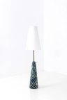 Lampe Céramique émaillée, laiton et textile Édition Søholm Stentøj Signée ‘Søholm Danmark NR’ sous la base Modèle créé vers 1960 H 157ר23cm (avec abat-jour : H 157ר40,5cm)
