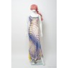 ROBERTO CAVALLI ROBE en crêpe de soie imprimé dégradé pastel siglée travaillée en biais, fines bretelles ornées de deux perles en métal doré siglées Env. T. S