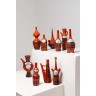 Roger Capron (1922-2006) Suite de neuf bouteilles et une gourde annulaire à décor 'Compo' Faïence émaillée Modèles créés entre 1955 et 1960 Signées sous les bases H 37 à 24 cm Provenance : collection privée, Paris.