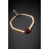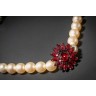 ROGER SCEMAMA - 1950/60's Collier composé de perles en verre blanches imitation, cristaux taillés rubis sur métal noirci