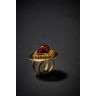 ROGER SCEMAMA - 1970's BAGUE en métal doré, cabochon en verre fumé brun Signée TDD : 45,5 ajustable Iconographie : droits réservés