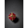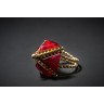 ROGER SCEMAMA - 1970's BAGUE "PYRAMIDE" en métal doré, verre translucide marbré grenadine Non signée TDD : 50