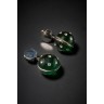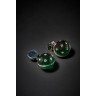 ROGER SCEMAMA pour CHARLES JOURDAN - 1970's PAIRE de CLIPS d'OREILLES en métal argenté, boules en résine verte ornée de strass