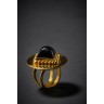 ROGER SCEMAMA probablement pour YVES SAINT LAURENT - 1970's BAGUE en métal doré, cabochon en verre noir bleuté Non signée TDD : 46 ajustable
