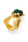 Bague sculpture en or jaune 18k (750‰) ornée d'un cristal brut de dioptase