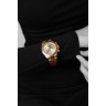 Cadran argenté brun avec index bâtons appliqués et aiguilles luminescentes, 3 compteurs pour l’indication des 12 heures, 30 minutes et des secondes, minuterie chemin de fer 1/5e de seconde, signé