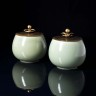 Royal Copenhague Ensemble de deux pots couvert Céramique céladon et bronze Couvercle Knud Andersen Edition Royal Copenhague Date de création : vers 1950 H 15 × Ø 12,5 cm