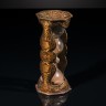 Sablier à trois ampoules dans une monture en marqueterie de paille polychrome. Délicate ornementation de lambrequins en paille de diffrentes teintes sur fond sombre ; intérieur concave des deux montants chantournés également à décor marqueté ; dessus octogonal avec cartouche et rinceaux symétriques ; base octogonale à décor de damier. Epoque Louis XIV H 16,5 cm (petites restaurations) Les sabliers en marqueterie de paille sont rarement parvenus jusqu'à nous compte tenu de la fragilité de leur décor. Exemplaires similaires : modèle plus simple provenant d'un couvent de Nantes, collection privée, Paris ; modèle de même qualité à cinq ampoules avec son étui, musée du Louvre, Paris (fi.). Ouvrage consulté : J. Attali, Mémoire de sabliers – Collections, mode d'emploi, Paris, 1997, pp 97 et 119.