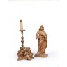On joint : Angelots en bois doré jouant de la cithare (L 26 cm) et pique cierge en bois doré (transformé en lampe, accidents) (L 38 cm)