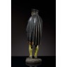 Saint Come en bois sculpté en ronde-bosse, polychromé et doré. Le saint patron des apothicaires est debout, tenant une file d'onguent dans sa main gauche ; visage d'un grand réalisme avec yeux aux paupières ourlées, nez fort, bouche à la lèvre inférieure charnue et menton creusé d'une fossette ; coiff d'un bonnet aux bords relevés, il est vêtu d’une tunique courte ceinturée aux manches fermées par un gros bouton et d'un manteau de la même longueur. Strasbourg ?, attribué à Nicolas d'Haguenau (actif de 1485 à 1526) et son atelier ?, vers 1500 H 89 cm (quelques reprises à la polychromie) Ouvrages consultés : Exposition Paris 1991/1992, S. Guillot de Suduiraut, Sculptures allemandes de la fi du Moyen Age dans les collections publiques françaises, Musée du Louvre, cat., pp. 79 à 91 ; Exposition Strasbourg 2012, Nicolas de Leyde – Sculpteur du XVe siècle, cat. ; Exposition Francfort-sur le-Main – Strasbourg 2012, S. Roller, Niclaus Gerhaert, Liebieghaus Skulturensammlung – Musée de l'œuvre Notre-Dame, cat. Le réalisme apporté au traitement du visage, à l'image d'un portrait, comme la simplifiation des habits tant par leur plissé que par leur polychromie rapprochent cette sculpture des deux bustes d'Hommes accoudés du musée de l'œuvre Notre-Dame de Strasbourg attribués à Nicolas de Haguenau (inv. MOND 444 et 445) (fi. a et b). Ce saint Côme semble en efft se rattacher à l'école strasbourgeoise de sculpture qui s'inscrit dans la fiiation de Nicolas de Leyde. Ce célèbre maître d'origine hollandaise quitta la capitale alsacienne en 1467. Ces œuvres empreintes d'un réalisme quasiment illusionniste ont fortement et durablement exercé une fascination auprès des artistes locaux dont fait partie Nicolas de Haguenau. Peu d'éléments sont connus sur ce sculpteur mentionné dans les textes jusqu'en 1526 et qui semble avoir été, avec ses frères, à la tête d'un important atelier à Strasbourg. On lui attribue notamment, outres ces bustes, les sculptures du fameux retable d'Issenheim réalisées en 1490. La mode vestimentaire de ce saint Côme, représenté comme un personnage civil, situe sa réalisation au tournant des XVe et XVIe siècle : tunique courte ceinturée tombant en plis verticaux, manteau de trois-quarts et chaussures "en pattes d'ours" qui fient leur apparition vers les années 1490. fi. a fi. b