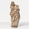 Saint Joseph en terre cuite avec restes de monochromie blanche. Debout, tenant l'Enfant sur le côté gauche, il est vêtu d'une tunique et d'un manteau dont un pan revient sur le devant. XVIIe siècle Hauteur : 37 cm (accidents et manques dont la tête de l'Enfant et le bras droit)
