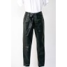SAINT LAURENT x ANTHONY VACCARELLO - 2017 PANTALON en agneau noir, effet de ceinture se boutonnant dans le dos T. 36 Iconographie : droits réservés