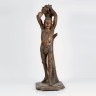 Saint Sébastien en noyer sculpté en ronde-bosse. Adossé à un tronc d'arbre, la jambe gauche avancée, le jeune saint lève les deux bras dont les poignets sont attachés au-dessus de sa tête. Fin du XVe siècle H 114 cm Soclé (quelques vermoulures, accidents, manques et rebouchages)