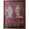 Sainte Hélène et Saint Jean-Baptiste en fils d'or, d'argent et de soie en applique sur fond de soie cramoisie. Partiellement du XVIIème siècle sur un fond sur soie cramoisie du XIXème siècle H 160 ×L 120cm