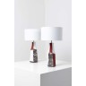 Salvatore Parisi (né en 1953) Paire de lampes Céramique émaillée Signées du cachet de l'artiste frappé sous la base Modèles créés vers 2015 H 42 × Ø 30 cm Hauteur totale 53,5 cm