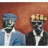 Sam Nhlengethwa (né en 1955, Afrique du Sud) Friends, 1995 Huile et collage sur toile Signée et datée en bas au centre ; signée, datée et titrée au verso 50 x 55 cm
