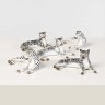 Ensemble de cinq léopards couchés en porcelaine, le pelage tacheté de noir.