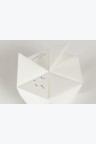 Les dessins préparatoires d’Isamu Noguchi donnent envie à Sandra Benhamou de mieux comprendre l’art du pliage, et de créer une version en papier de la Prismatic Table. Avec Aurèle Duda, artiste plieur, elle crée une forme d’une simplicité et d’une légèreté désarmantes, PLEASE est un jeu d’enfant : chaque volet supérieur cache un message, comme un indice menant à un art, une œuvre, un artiste.