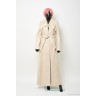 SCHERRER LONG MANTEAU en agneau crème, col et dos garnis de lapin ce dernier partiellement rebrodé de cannetilles, perles et strass, ceinture T. 38 Une petite tache au dos d'environ 1 cm et sur manche droite