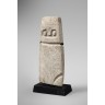La silhouette, stylisée à l'extréme, évoque la transformation chamanique. Ici la tête humaine de forme rectangulaire est pourvue d'yeux évoquant ceux d'un oiseau nocturne. Le corps monobloc est juste animé de deux rainures indiquant les bras ou les ailes.