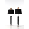 Sergio Rodrigues (1927-2014) Paire de lampes Acier chromé, bois et textile Edition Oca Date de création: vers 1965 H109ר39 cm Bibliographie: Soraia Cals, Sergio Rodrigues, p.190